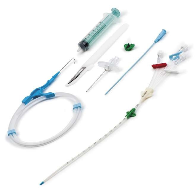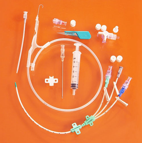 Катетер для центральных вен (набор по Сельдингеру), трёхканальный. Используется для катетеризации крупных сосудов. Изготовлен из щадящего ткани полиуретана, градуирован для облегчения контроля за глубиной его введения. Упакован в блистер вместе с набором для установки, в состав которого входят: проводящая игла, дилататор, проводник, шприц, крылышки для фиксации, заглушка с инъекционной вставкой. Имеет мягкий, атравматичный кончик. Стерилен.